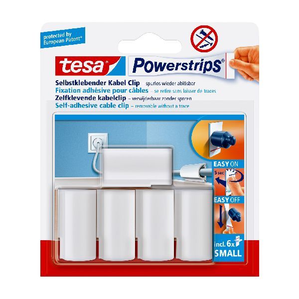 Der tesa Powerstrips Kabel-Clip für das einfache Fixieren von Kabeln im Haushalt, Home Office und am Arbeitsplatz.
