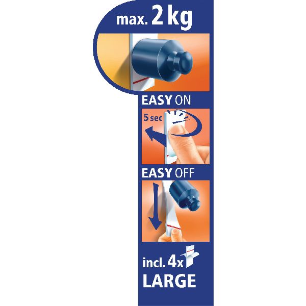 - starker Halt für Gegenstände bis zwei Kilogramm auf fast allen Untergründen (nicht geeignet für Vinyltapeten, antihaftbeschichtete Oberflächen, Styropor, Schaumstoff, poröse Materialen)