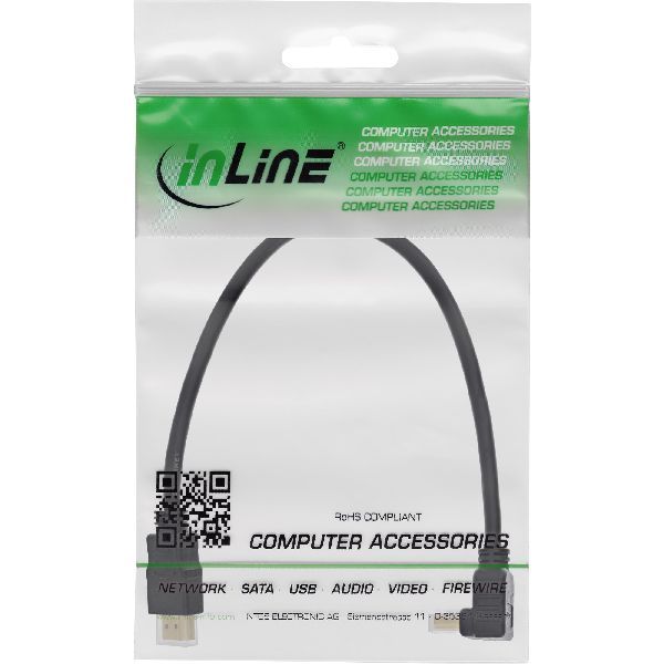 Produktinformationen "InLine® HDMI HS Kabel, gewinkelt, mit Eth., ST / ST, verg. Kont., schwarz, 0,3m 17033V"