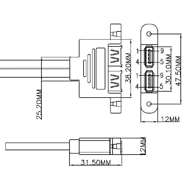 - Stabile Verschraubung durch M3 Gewinde im Flansch: Die USB-A Buchsen verfügen über integrierte M3 Gewinde. Mit 47,5mm Lochabstand und 31,5mm Einbautiefe ist eine sichere Integration möglich.