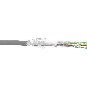 Twisted Pair Cat.5e Netzwerkkabel in Strangform (mehradriger Kern), geeignet für Patching auf Maß. Hinweis: Das Leitermaterial dieses Kabels ist eine Legierung aus Kupfer und Aluminium (CCA). Die volle Kompatibilität mit den Standards der Kategorie 5e über lange Strecken (ca. >50 m) ist nicht gewährleistet. Unter diesen Bedingungen wird die Verwendung eines Kabels aus 100% Kupfer (CU) empfohlen.