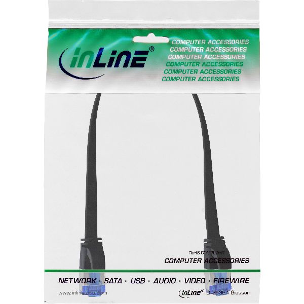 Produktinformationen "InLine® Patchkabel flach, U/FTP, Cat.6A, TPE halogenfrei, schwarz, 0,3m 75713S"