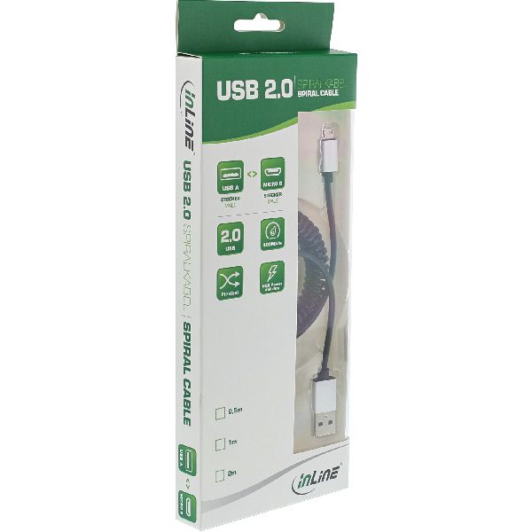 Weiterführende Links zu "InLine® Micro-USB 2.0 Spiralk., USB-A ST/Micro-B ST, schwarz/Alu, flexibel, 3m 31730R"