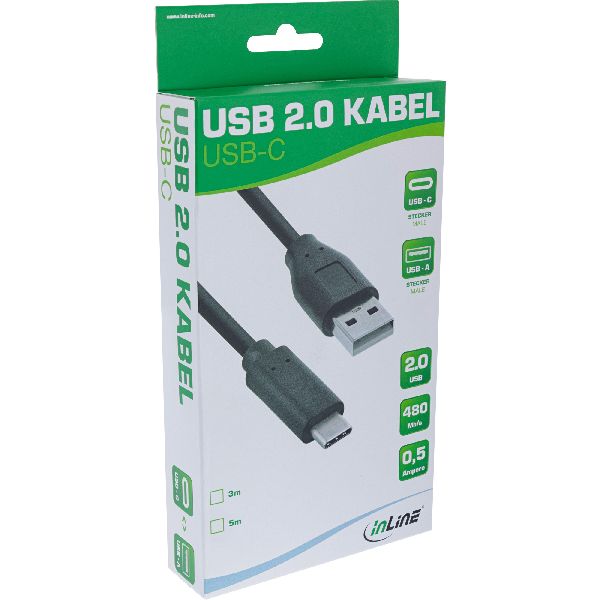 InLine® High Speed USB 2.0 Kabel mit Typ-C Stecker – für zuverlässige Datenübertragung und sicheres Laden