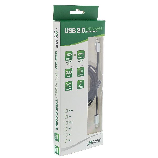 Produktinformationen "InLine® USB 2.0 Kabel, USB-C ST an Micro-B ST, schwarz/Alu, flexibel, 1,5m 35844"