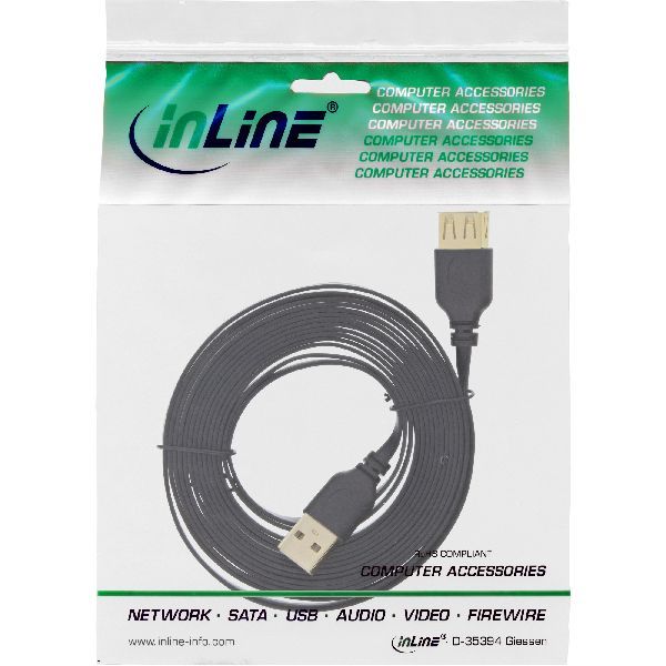 Weiterführende Links zu "InLine® USB 2.0 Flachkabel Verlängerung, A ST / BU, schwarz, Kontakte gold, 2m 34620F"