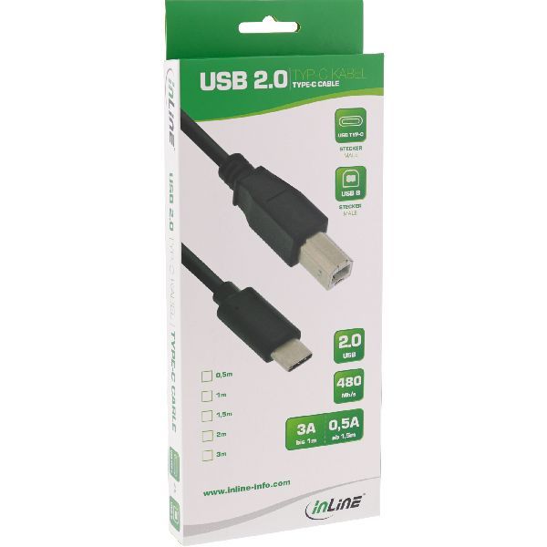 Weiterführende Links zu "InLine® USB 2.0 Kabel, USB-C Stecker an USB-B Stecker, schwarz, 5m 35765"