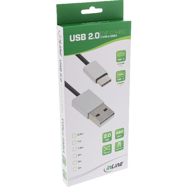 Produktinformationen "InLine® USB 2.0 Kabel, USB-C Stecker an A Stecker, schwarz/Alu, flexibel, 2m 35832"