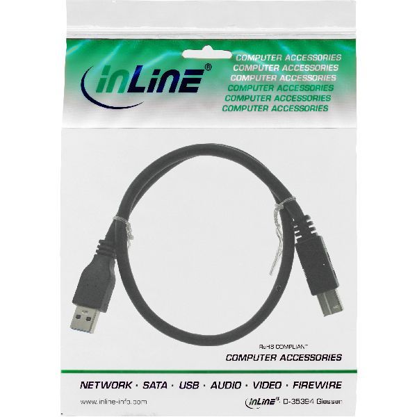 Weiterführende Links zu "InLine® USB 3.2 Gen.1 Kabel, A an B, schwarz, 0,5m 35305"