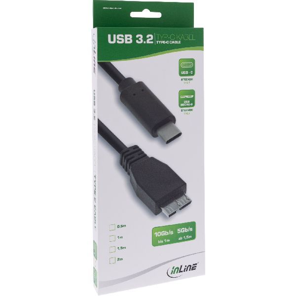Weiterführende Links zu "InLine® USB 3.2 Gen.1x2 Kabel, USB-C Stecker an Micro-B Stecker, schwarz, 0,5m 35726"