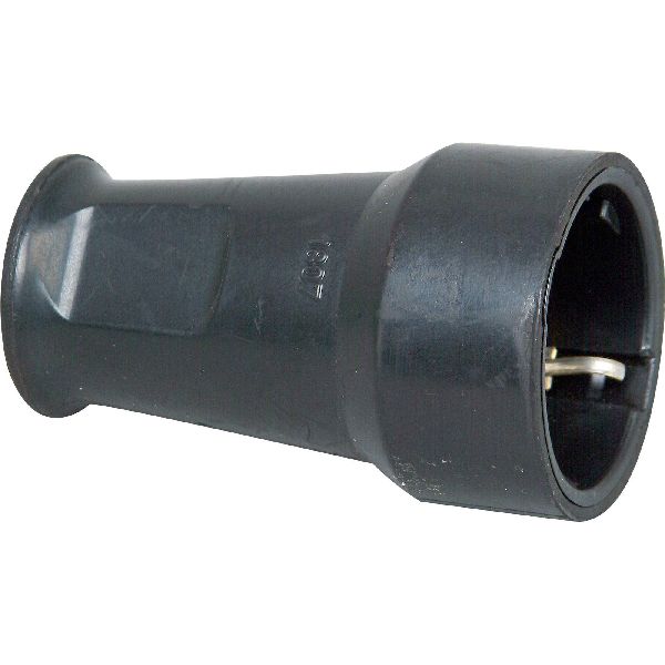SEBS Schutzkontakt-Kupplung, Knickschutz, bruchfest, Einsatz: Polyamid, Kappe: SEBS, für Kabelquerschnitt bis 3x1,5mm², 16A, 250V~, Schutzart IP20, Farbe: schwarz