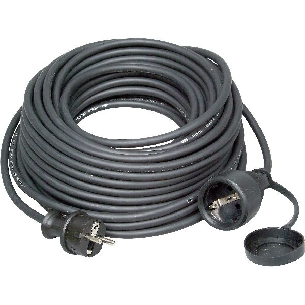 Gummi-Verlängerung, 16A, 250V~, Schutzkontakt-Gummi-Stecker und Schutzkontakt-Gummi-Kupplung Gummi-Leitung H05RR-F 3x1,5mm², 10m, Schutzart IP44, Farbe: schwarz