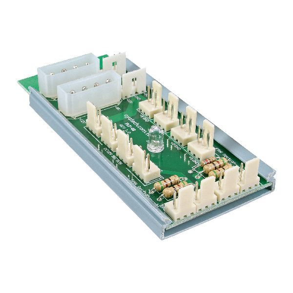 Dieser Multi Power Port (MPP) sorgt für Anschlussmöglichkeiten von bis zu 12 Lüftern. Für die Lüfter sind 4x 12V (3pin Molex), 4x 7V (3pin Molex) und 4x 5V (3pin Molex) Anschlüsse vorhanden. Der MPP wird direkt am Netzteil angeschlossen und signalisiert die Betriebsbereitschaft über eine rote LED.