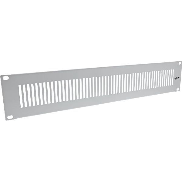Blindplatte perforiert zum Verschließen von ungenutzten Räumen an der Front eines 19" Schranks. Die Verwendung von Blindlochplatten schützt die Geräte und die interne Verdrahtung und begünstigt eine gute Wärmeableitung.