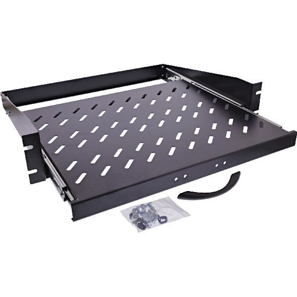 Der ausziehbare 19"-Fachboden eignet sich für die Montage in standardisierten 19"-Schränken. Der Fachboden bietet eine zuverlässige Lösung zur Aufbewahrung und leichten Zugänglichkeit von Geräten und Werkzeugen.