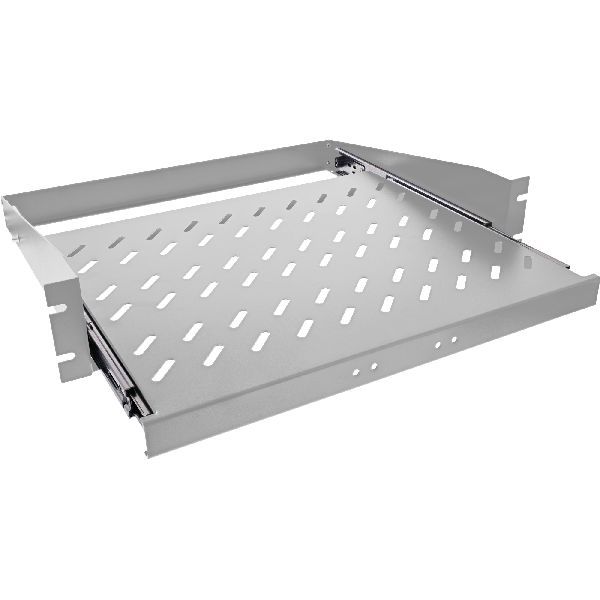 Der ausziehbare 19"-Fachboden eignet sich für die Montage in standardisierten 19"-Schränken. Der Fachboden bietet eine zuverlässige Lösung zur Aufbewahrung und leichten Zugänglichkeit von Geräten und Werkzeugen.