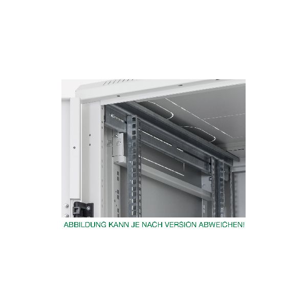 Die Vierpunkthalterung ermöglicht bei 800 mm breiten Verteilern die Installation von verstellbaren Leisten im Abstand von 19", 21" und 23". Stahlblech 2,5mm.