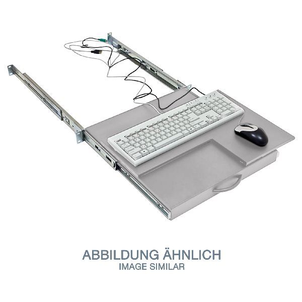 Auszieh-/drehbarer 19”-Fachboden für Tastatur und Maus.