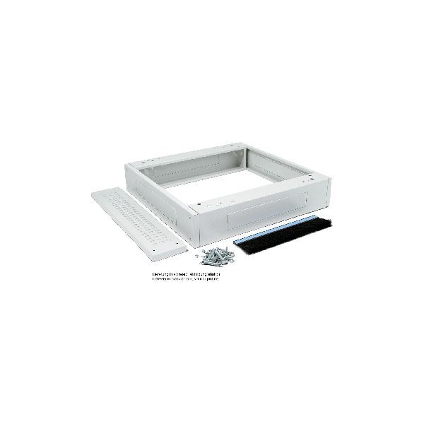 Die Sockel sind universell, d. h. für alle Standverteiler verwendbar, ausgenommen RSX. Sie bestehen aus zwei Seitenteilen, die der Schranktiefe entsprechen, sowie zwei entsprechend breiten Blenden für vorn und hinten.