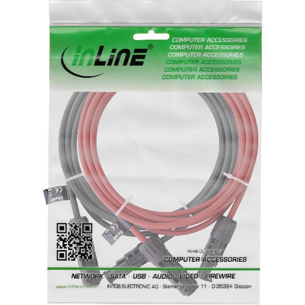 InLine verbindet seit 1991 Industrie und Endverbraucher mit hochwertigem IT-Zubehör gefertigt und geprüft nach deutschen Qualitätsstandards. Das InLine Solarkabel Verlängerungs-Set ist die perfekte Lösung für die sichere und langlebige Verkabelung von Photovoltaikanlagen. Der verzinnte Kupferleiter mit 6 mm² Querschnitt gewährleistet minimale Verluste und eine zuverlässige Stromübertragung. Mit einer Nennspannung von 1,0/1,0 kV AC und einer Arbeitsspannung von 1,5 kV DC erfüllt das Kabel höchste Anforderungen an moderne Solarsysteme. Seine robuste Bauweise mit einem Außendurchmesser von 6,3 mm, einer Isolationsstärke von 0,7 mm und einer widerstandsfähigen Beschichtung von 0,8 mm macht es besonders langlebig und beständig gegenüber UV-Strahlung, Ozon und extremen Witterungsbedingungen. Geprüfte Flammbeständigkeit nach EN 60332-1-2 und die Verwendung halogenfreier Materialien sorgen zusätzlich für höchste Sicherheit. Das Kabel ist für Temperaturen von –40°C bis +90°C ausgerichtet und lässt sich dank des minimalen Biegeradius von 26 mm einfach installieren. Die vorkonfektionierten Solarstecker, kompatibel mit MC4-, Standard4- und PC4-Systemen, ermöglichen eine schnelle und unkomplizierte Verbindung von Solarpanels und Wechselrichtern.