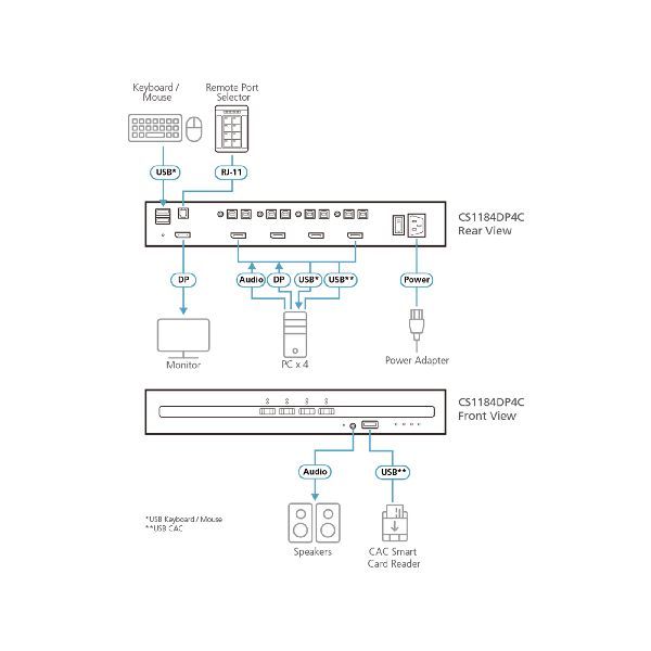 Weiterführende Links zu "ATEN CS1184DP4C 4-Port KVM Secure Switch mit USB 4K DisplayPort PSD PP v4.0-kon 61615E"