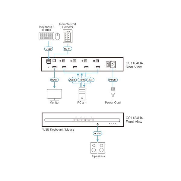 Produktinformationen "ATEN CS1184H4 4-Port KVM Secure Switch mit USB 4K HDMI (PSD PP v4.0-konform) 61615X"