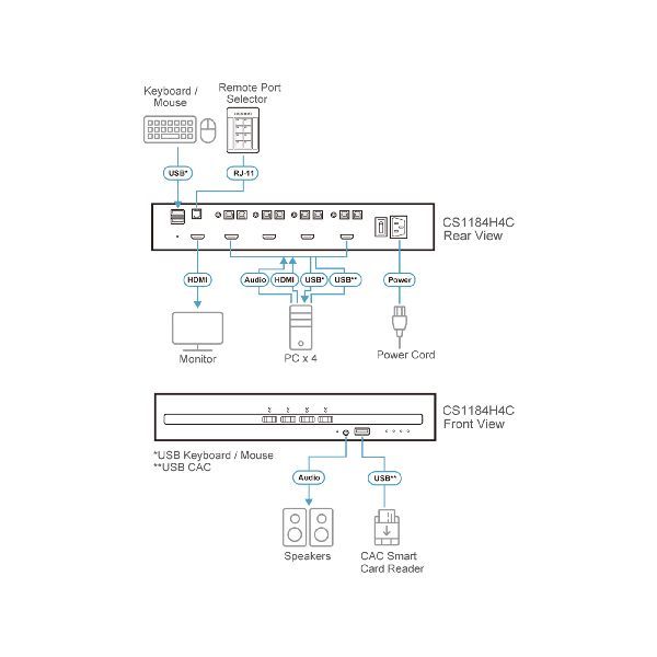 Weiterführende Links zu "ATEN CS1184H4C 4-Port KVM Secure Switch mit USB 4K HDMI mit CAC (PSD PP v4.0) 61615Y"