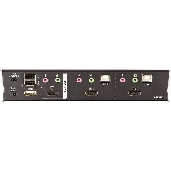 - Eine USB-Konsole steuert zwei Computer mit HDMI-Grafik und zwei weitere USB-Geräte