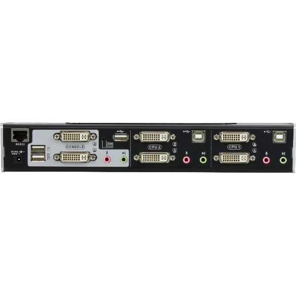KVM-Switch mit 2 Ports für USB-Eingabegeräte und DVI-Zweischirmsysteme mit Tonübertragung und USB 2.0-Hub (alle KVM-Kabel im Lieferumfang enthalten). Der DVI-KVMP-Switch CS1642A für Zweischirmsysteme und USB 2.0 schlägt eine völlig neue Richtung in Sachen KVM-Funktionalität ein, indem er einen 2-Port-KVM-Switch mit einem 2-Port-USB 2.0-Hub vereint. Gleichzeitig besitzt er Anschlussmöglichkeiten für zwei DVI-Monitore und ist somit das ideale Werkzeug für alle Grafikdesigner, Banker und Finanzberater, für medizinische Anwendungen und Computerspiele. Über ein RJ45 Patchkabel lässt sich der CS1642A zudem noch mit einem weiteren CS1642A kaskadieren, dadurch können nun 2 PCs mit 4 (!) angeschlossenen Displays verwendet werden. Außerdem unterstützt der CS1642 eine satte 2.1-Kanal-Tonübertragung und verleiht somit jedem Heimkinosystem völlig neue Dimensionen in Sachen Videowiedergabe. Als KVM-Switch ermöglicht er es, zwei Computer mit je zwei Bildschirmen von einer einzigen USB-Konsole (USB-Tastatur, Monitor und USB-Maus) zu steuern. Als USB-Hub ermöglicht er den mit der Einheit verbundenen Computern den zeitversetzten Zugriff auf angeschlossene USB-Geräte.