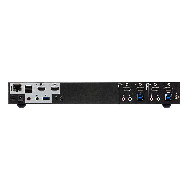 KVM- (Computer) Ports | 2 x USB 3.1 Gen 1 Typ-B-Buchse (Blau) 4 x HDMI Buchse (Schwarz) 2 x 3,5 mm-Audiobuchse (Grün) 2 x 3,5 mm-Audiobuchse (Rosa) |