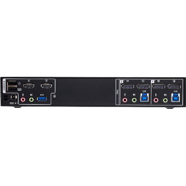 Der 2-Port 4K DisplayPort Dual Display Mini-Matrix Boundless KVM-Switch CM1942, der einen 2-Port DisplayPort-Switch und einen 2-Port USB 3.1 Gen 1-Hub kombiniert, wurde entwickelt, um sofortigen Zugriff auf zwei DisplayPort-Computer über einen einzigen USB / HDMI zu ermöglichen Konsole. Der CM1942 verfügt über zwei PC-Betriebsmodi, um die KVM-Umschaltung in einer 2x2-PC/Monitor-Matrix zu erleichtern. Im Einzel-PC-Modus können Inhalte des PCs mit dem aktuellen KVM-Fokus über beide Monitore angezeigt werden; Der Dual-PC-Modus hingegen ermöglicht die getrennte Darstellung von Inhalten beider PCs auf zwei Monitoren unabhängig vom KVM-Fokus. Die erweiterte Videounterstützung bietet eine besser definierte HDMI-Verbindung mit lebendigen Videoauflösungen von bis zu 4K DCI (4096 x 2160 bei 60 Hz). Mit dem CM1942 können Benutzer schnell und mühelos zwischen zwei Computern wechseln, indem sie praktische Drucktasten, Hotkeys, Mausrad, Mauszeiger und Remote-Port-Auswahl verwenden. Mit Boundless Switching ermöglicht der CM1942 Benutzern, den Mauszeiger einfach über Fenster zu bewegen, um zu anderen Videoquellen zu wechseln. Dies erleichtert den sofortigen Zugriff auf und die Steuerung eines Zielcomputers. Mit dem integrierten 2-Port USB 3.1 Gen 1-Hub ist der Zugriff auf angeschlossene Peripheriegeräte zwischen zwei Computern einfach, während die Peripherieumschaltung unabhängig vom KVM-Fokus ist. Darüber hinaus ermöglicht der CM1942 eine Datenübertragungsrate von bis zu 5 Gbit/s für maximale Multimedia-Betriebseffizienz, wodurch Desktop-Multitasking mühelos und produktiver wird.Der CM1942 wurde entwickelt, um die ständig steigenden Anforderungen an zwei Displays, ultraschnelle Datenübertragungsraten und verlustfreie 4K-Videoauflösung zu erfüllen, und wurde speziell für Anwendungen entwickelt, in denen Multitasking von entscheidender Bedeutung ist, wie z. B. Grafikdesign, Finanzhandel und Videopostproduktion.