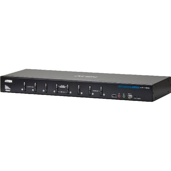 KVM-Switch mit 8 Ports für USB-Eingabegeräte und Dual-Link-DVI-Grafik mit Tonübertragung. Der USB-KVM-Switch mit 8 Ports für Dual Link-DVI-Grafik, CS1788, ist ein Multifunktionsgerät, das es ermöglicht, 8 Computer von einer einzigen USB-Tastatur, Monitor (DVI-I und VGA) und USB-Maus aus zu steuern. Er kann bis auf drei Ebenen kaskadiert werden - sodass bis zu 73 CS1788s bis zu 512 Computer steuern können - alle von einer einzigen Konsole aus. Eine ideale Lösung zur Verwaltung von IT-Anwendungen aller Art. Weiterhin unterstützt der CS1788 die Multiview-Konfiguration, durch die bis zu vier Switches über herkömmliche USB-Kabel verbunden werden können, um auf Mehrschirmcomputern übersichtlich die gesamte Konfiguration im Griff haben zu können. So können Sie die Bildausgabe bequem gegenüberstellen, analysieren und übersichtlich überwachen, wodurch sich der gesamte Arbeitsablauf vereinfacht. Ferner besitzt der CS1788 die bekannte OSD-Menüsteuerung von ATEN, über die der Zugriff auf jeden der angeschlossenen Computer möglich ist. Über das OSD-Menü lässt sich auch die Gerätekonfiguration sichern und bei Bedarf zurückspielen. Der CS1788 unterstützt Multimediatastaturen und die Tonübertragung. Die Toneingabe kann über zwei Mikrofone, eins für jeden Computer, erfolgen. Sie können sich die Tonwiedergabe der einzelnen Computer auf zwei Lautsprechersets anhören (jeweils ein Wiedergabesignal gleichzeitig).