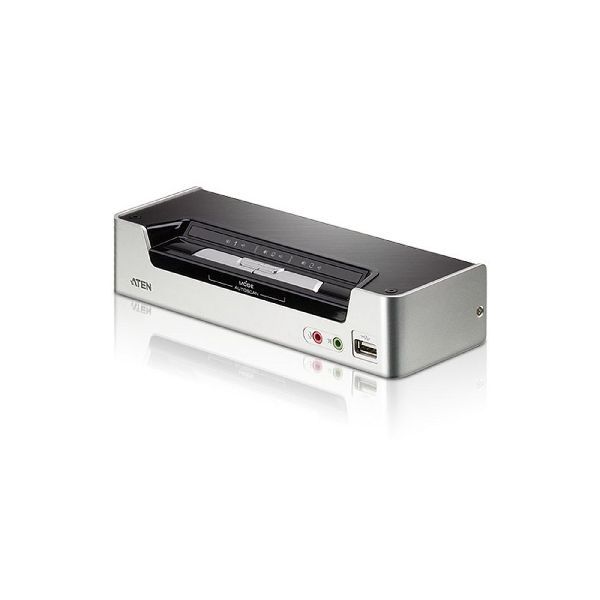 - Unabhängiges Umschalten zwischen KVM, USB-Peripheriegeräten und Audiodaten über die vorderseitigen Drucktasten oder Hotkeys