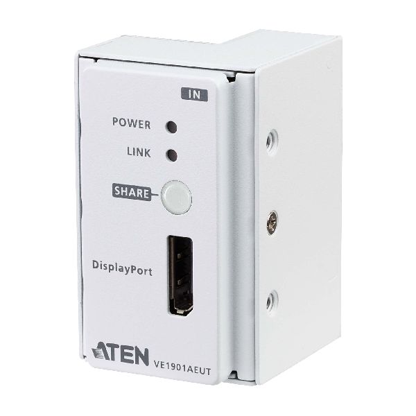 Mit der Share-Funktion kann der VE1901AEUT beim Anschluss an einen kompatiblen Empfänger, z. B. VP1421, die Quelle ferngesteuert umschalten, was dem Anwender eine komfortable AV-Erweiterung ermöglicht. Dieser kompakte Sender ermöglicht eine saubere und einfache Installation an Wänden oder Tischen, so dass der Anwender seine AV-Anwendungen elegant in jede Umgebung einfügen kann. Daher ist der VE1901AEUT ideal für den Einsatz in Besprechungsräumen, in digitalen Bildungsumgebungen oder in allen Anwendungen, die eine stabile, hochwertige Übertragung und eine mühelose Installation erfordern.