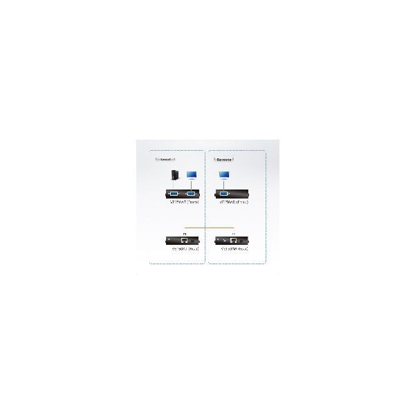 Die Grafikverlängerung VE150A besteht aus einer lokalen Sende- sowie einer Empfangseinheit für die Gegenstelle, die über ein herkömmliches Kat. 5e-Kabel verbunden werden. Die Entfernung zwischen beiden Geräten kann bis zu 150m betragen. Sie eignet sich insbesondere für Fabriken und Baustellen sowie Umgebungen, wo das Anzeigegerät an einem sensiblen Ort aufgestellt ist, Sie jedoch die Systemeinheit an einem sicheren Platz aufstellen möchten.
