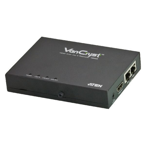 Der HDMI Over Kat. 5-Repeater VB802 ist eine HDMI-Signalverlängerung, die zu den HDMI Over Kat. 5-Splittern bzw. Verlängerungen von ATEN kompatibel ist. Der VB802 vergrößert den Übertragungsweg auf bis zu 60 m über herkömmliche Kat. 5e-Kabel.