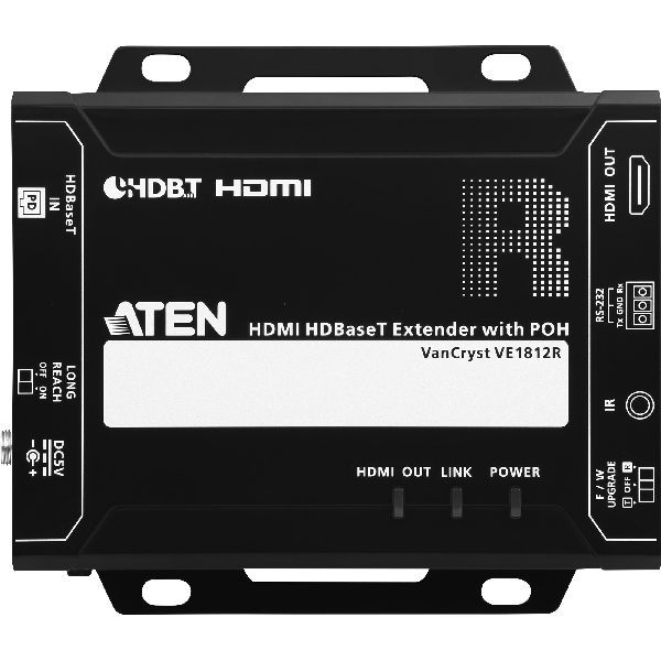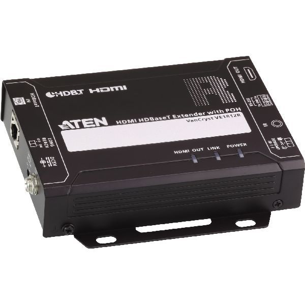 Der VE1812R verfügt über Power over HDBaseT (POH), das die Stromversorgung von Tx zu Rx über Cat 5e / 6 / 6a Kabel ohne zusätzliches Netzteil ermöglicht. Der VE1812R unterstützt RS-232- und IR-Signaldurchschleifung, so dass Sie das HDMI-Quellgerät von der Empfängereinheit (VE1812R) aus steuern und gleichzeitig von der Sendeeinheit (VE1812T) auf das HDMI-Anzeigegerät zugreifen können. Die IR-Signale können auch in beide Richtungen erweitert werden. br> br>Der VE1812R HDMI HDBaseT Receiver mit POH ist HDMI- (3D, Deep Color, 4kx2k) und HDCP-kompatibel. Bei der Übertragung von HDMI / 4K mit einem Cat 6a oder ATEN 2L-2910 Cat 6 Kabel kann die maximale Entfernung bis zu 100 Meter betragen. Wenn der Long Reach Mode aktiviert ist, kann der VE1812R das HDMI-Signal auf bis zu 150m bei 1080p erweitern. Der VE1812R eignet sich perfekt für digitale Klassenzimmer, Videokonferenzräume, Spiele oder andere Installationen, die eine hervorragende Videoqualität erfordern.