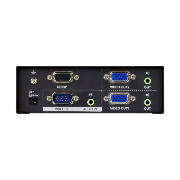 Mit dem VGA-Splitter mit 2 Ports und Tonübertragung VS0102 von ATEN können Sie ein einziges VGA-Grafiksignal mit Ton auf bis zu 2 Bildschirmen ausgeben. Der Stereoton lässt sich dabei völlig unabhängig steuern. Der Splitter unterstützt Video-Bandbreiten bis 450MHz, wodurch eine optimale Bildqualität und Auflösungen bis 1920 x 1440 gewährleistet sind.Außerdem besitzt der VS0102 eine eingebaute RS-232-Schnittstelle über die sich das Gerät ohne weiteres in bestehende Systeme integrieren lässt, sodass der Splitter problemlos über einen hochwertigen Controller oder den PC steuerbar ist.Der VS0102 ist ideal für Konferenz- und Schulungsräume sowie zur gleichzeitigen Übertragung an mehrere Bildschirme. Er lässt sich problemlos in drei Ebenen kaskadieren, wodurch ein einziges Bildsignal auf bis zu 8 Bildschirme ohne Qualitätseinbußen projiziert werden kann.