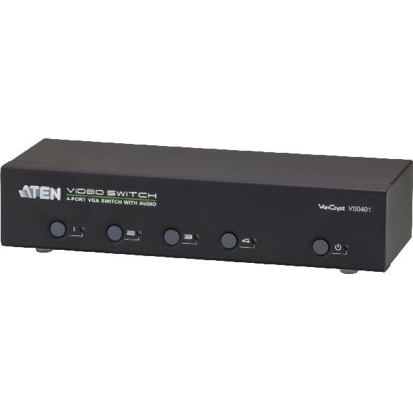 Produktinformationen "ATEN VS0401 Monitor-Umschalter VGA 4-fach, mit Audio, über RS-232 steuerbar 57764B"