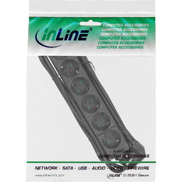 Weiterführende Links zu "InLine® Steckdosenleiste, 6-fach Schutzkontakt, schwarz, 3m 16463S"