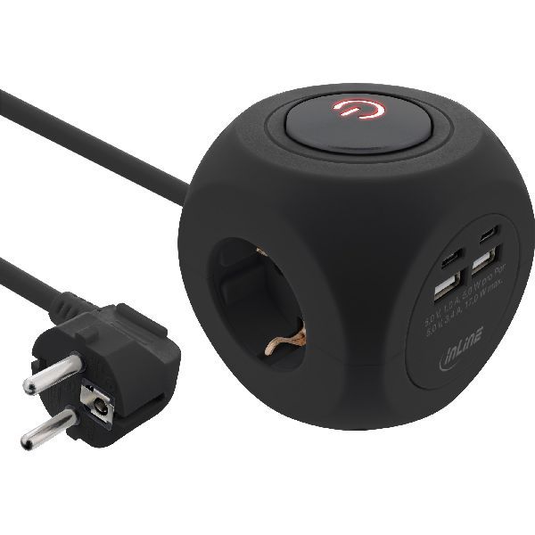 Weiterführende Links zu "InLine® Charging Cube, 3x Schutzkontakt, 2x USB-C, 2x USB-A, schwarz, 2m 16499B"