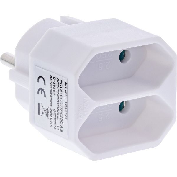 Der InLine® Steckdosenadapter mit Schutzkontaktstecker und zwei Eurobuchsen ist die praktische Lösung, um mehrere kompakte Geräte gleichzeitig zu betreiben – ganz ohne große Mehrfachsteckdosen. Besonders bei Anwendungen im Wohnbereich, Homeoffice oder in Technikzonen ist der Adapter eine platzsparende und elegante Option. Dank des erhöhten Berührungsschutzes eignet er sich auch für sensible Umgebungen wie Familienhaushalte oder öffentliche Einrichtungen. Mit bis zu 2,5 A pro Buchse versorgt der Adapter zuverlässig kleine Elektrogeräte wie Netzteile, Radiowecker, Router oder Ladegeräte. Die dezente weiße Farbgebung fügt sich nahtlos in jedes Umfeld ein. Ob auf dem Schreibtisch, in der Küche oder im Technikraum – dieser Adapter ist die clevere Lösung für eine sichere und kompakte Stromverteilung.